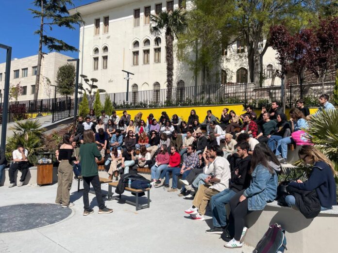 Geçtiğimiz gün ise İstanbul Üniversitesi Boykot Komitesi, Boğaziçili iki ÖTK temsilcisini deneyim aktarmaları ve ÖTK işleyişi hakkında bilgi verdikleri bir sunum yapmaları için davet etti. ÖTK tarihinden, ODTÜ ve Boğaziçi deneyiminden bahsedildikten sonra İÜ’de örülecek kampanya ve yol haritası için bir kamusal tartışma başlatıldı. Gerek İÜ Öğrenci Meclisi’nden ve Boykot Komitesi’nden öğrenciler kendi iç dinamiklerine ilişkin tartışırken gerekse de Boğaziçili temsilcilere sorular soruldu ve aktarımlar yapıldı. Boğaziçi’ne ve ÖTK’ya ilişkin tartışmalar son bulduktan sonraysa öğrenci forumu devam etti. Açık havada yapılan etkinliğe İstanbul Üniversitesindeki muhtelif bölümlerden pek çok öğrenci katılım sağladı. Öğrenci dayanışmasının ulusal çapta büyütülmesi ve öğrenci hareketinin kendi kalıcı mücadele araçlarını inşa etmesi namına bu tür bir araya gelişler kıymetini koruyor.